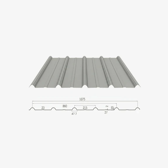 The YX20-215-860(1075) is a high-profile corrugated steel sheet designed for maximum structural performance. With a significant rib height of 20mm and a wide pitch of 215mm, this profile is built to handle higher load requirements than standard lining sheets. It is available in multiple thicknesses (0.5mm to 0.8mm) and two effective coverage widths to accommodate various architectural scales.